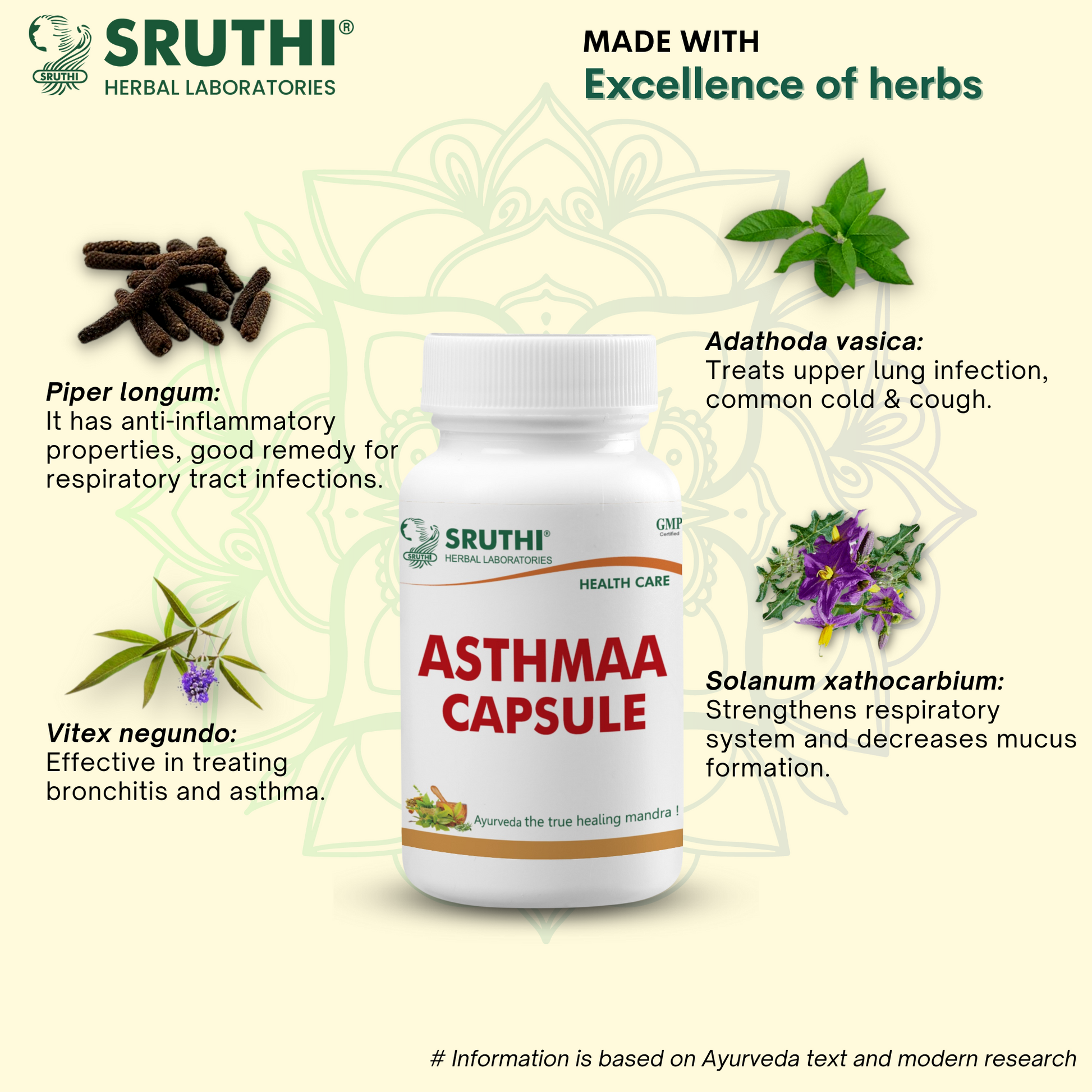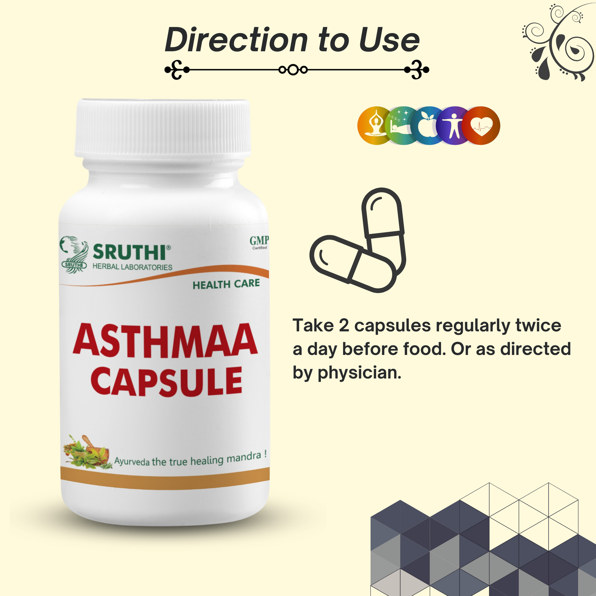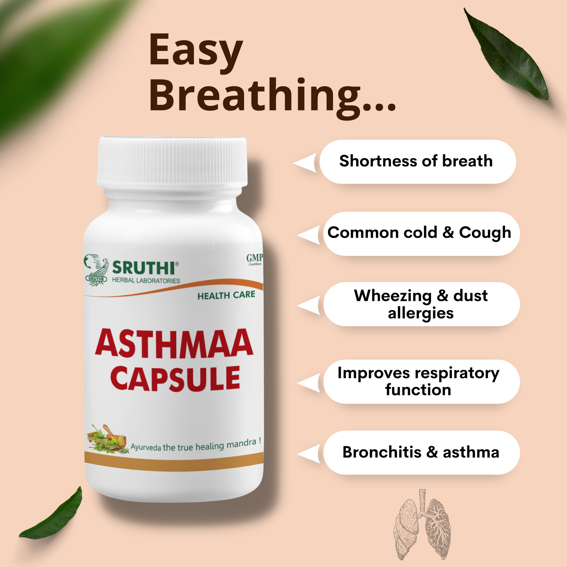 ● The key ingredients of Sruthi Asthmaa Capsule helps in fighting combat respiratory disorders.