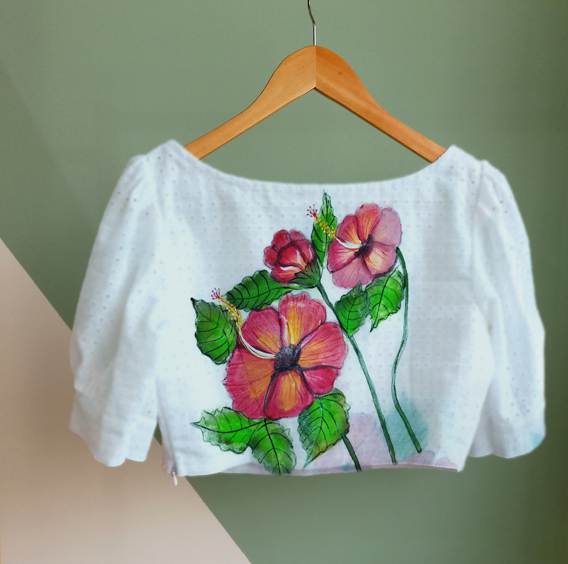 This Blush of Hibiscus blouse fabric offers customizable options for buyers, providing them with the ability to create their desired look. With endless possibilities, customers can effortlessly create their ideal blouse without compromising on quality. Expertly crafted with hibiscus fabric, this blouse promises a unique and luxurious touch to any outfit.