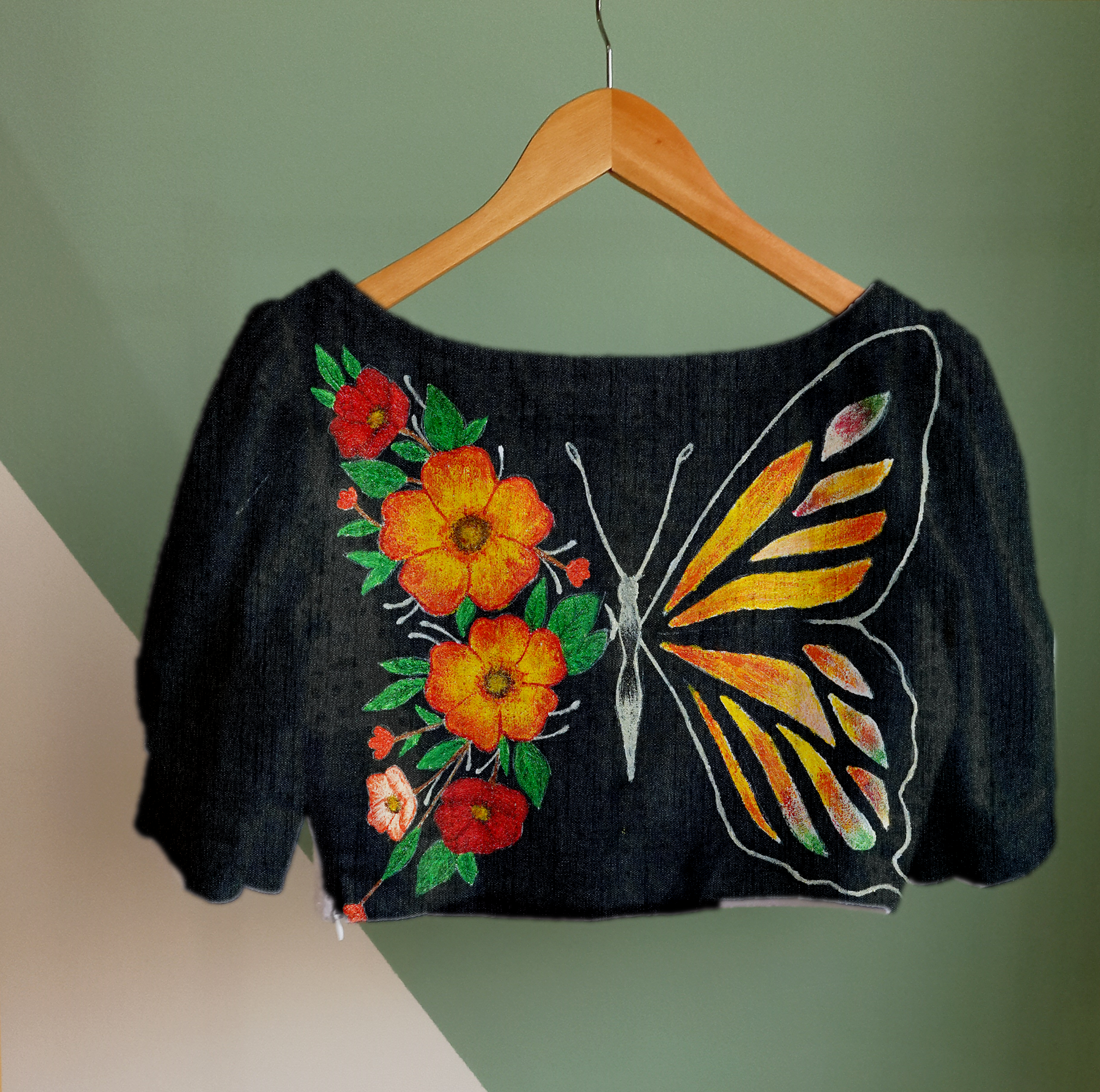 Butterfly & Bloom Hand-Painted Blouse Fabric