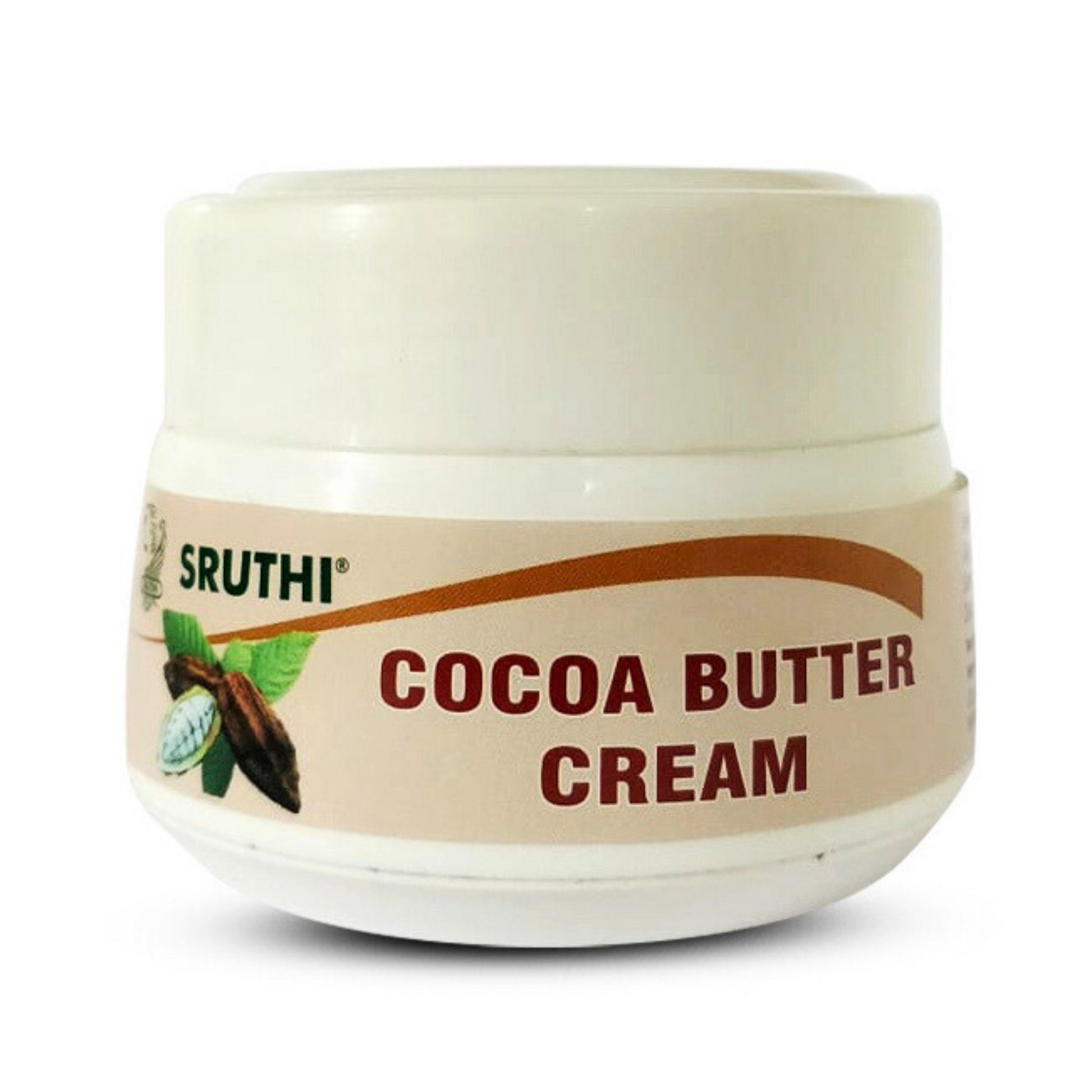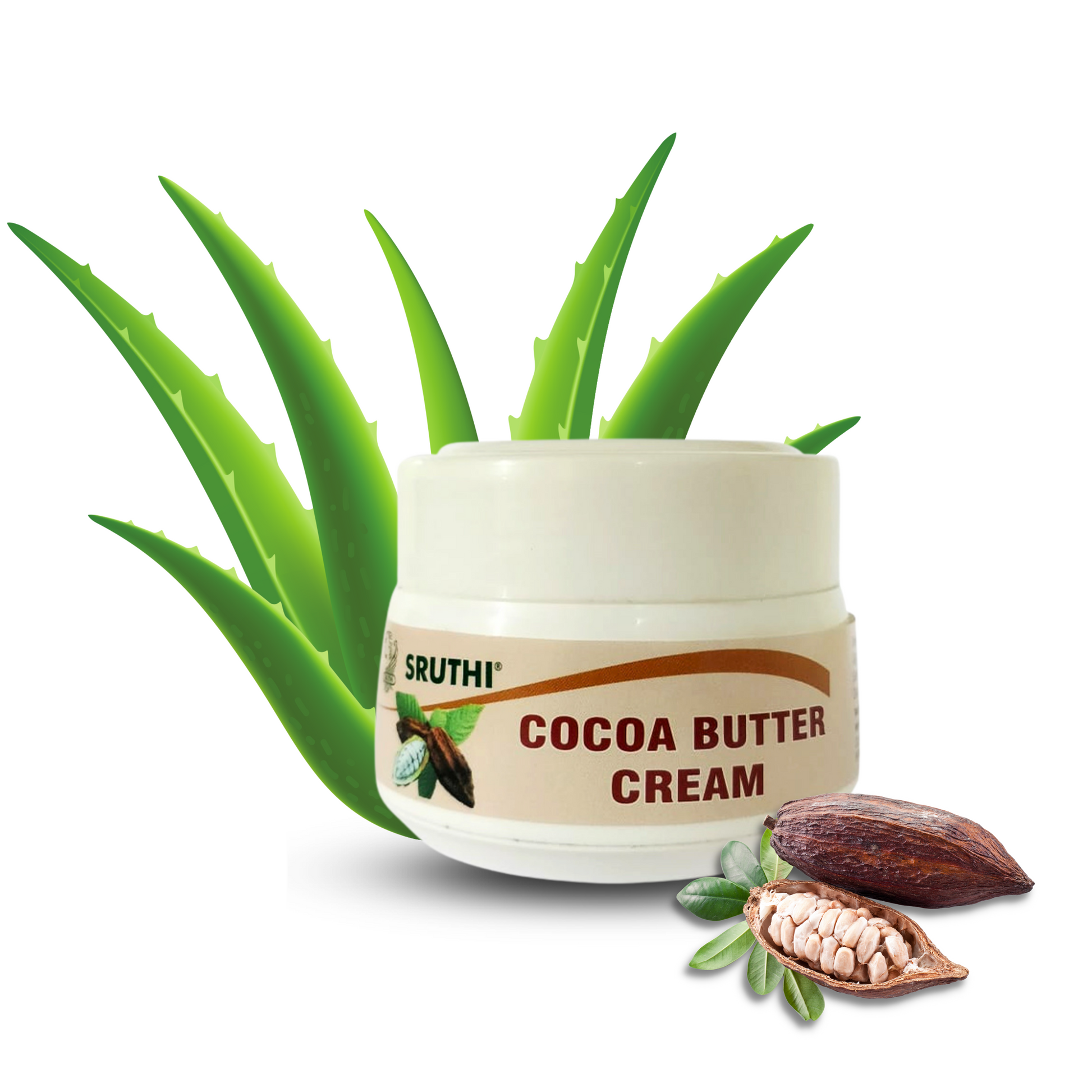 Apply Sruthi Cocoa Butter Cream gently over face, hands and legs daily after cleansing.