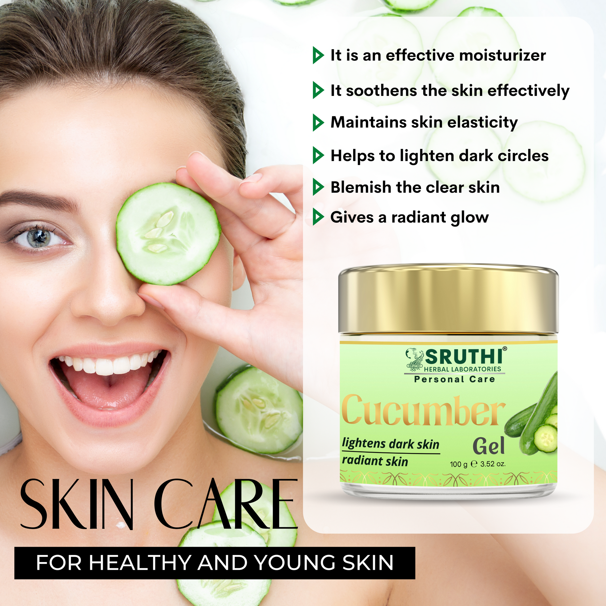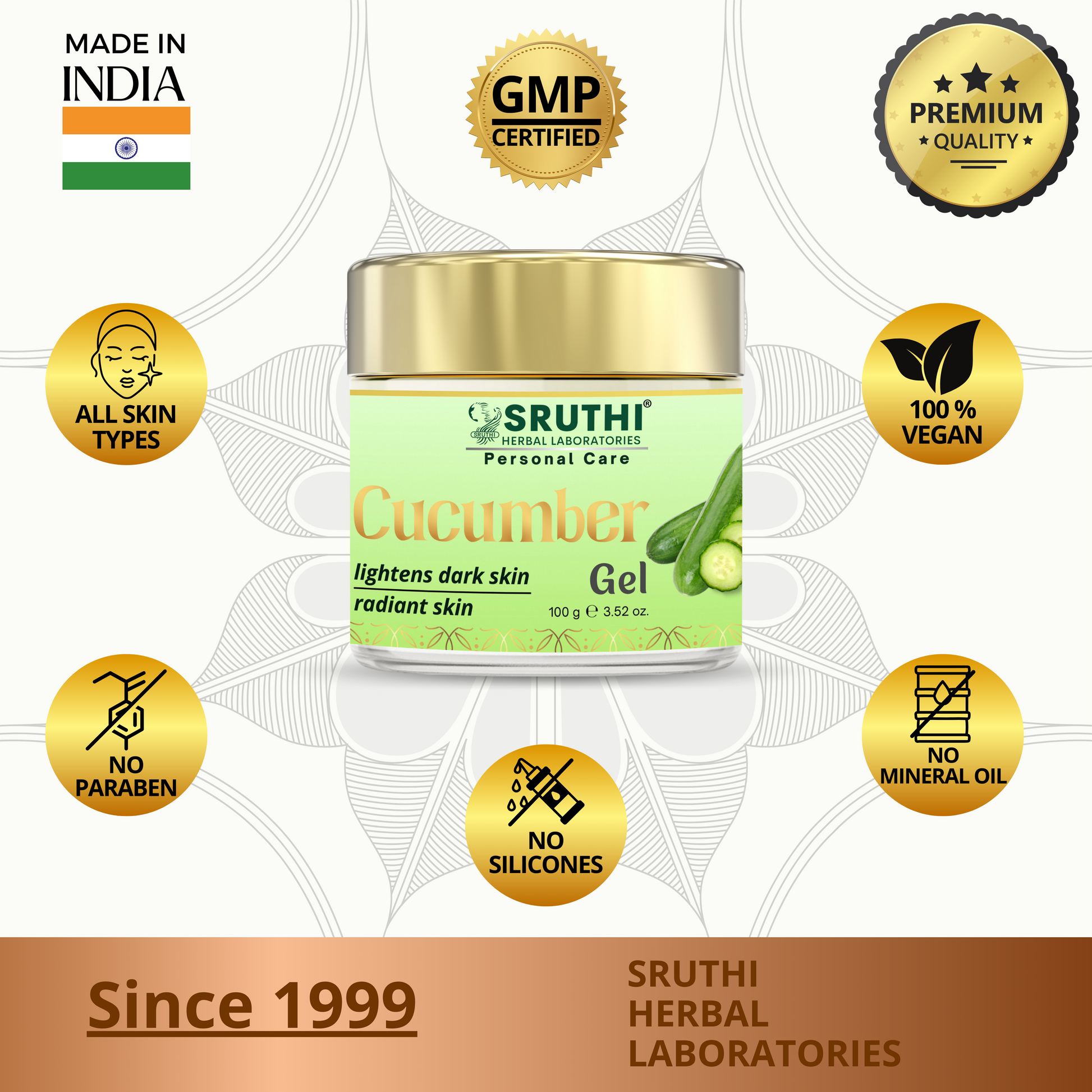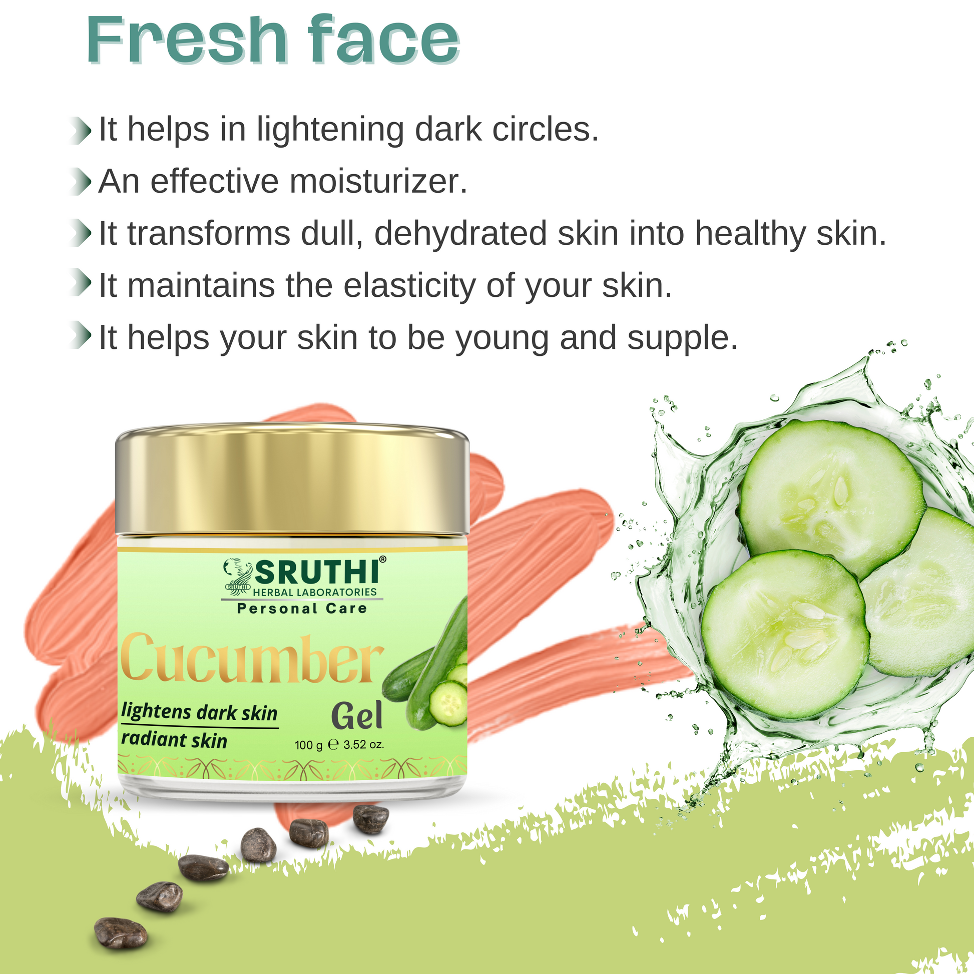 ● Sruthi Cucumber gel infuse into skin that releives stress helps in lightening dark circles.
