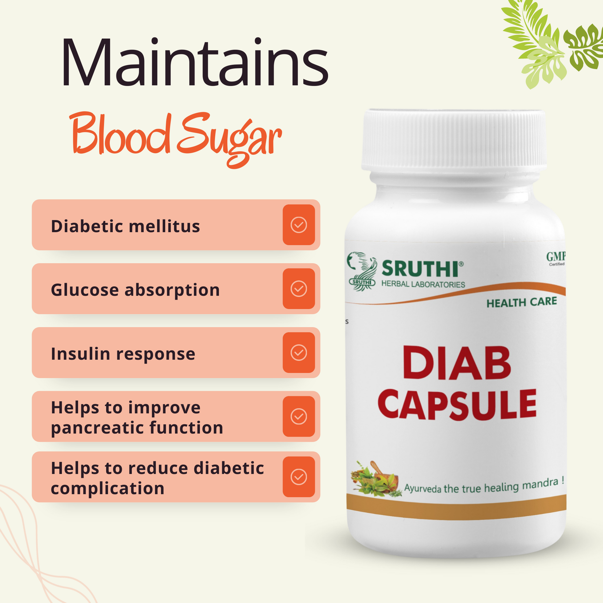 ● Sruthi Diab Capsule helps in the treatment of diabetic carbuncle. It also decreases hepatic glucose production and prevents hyperglycemia.