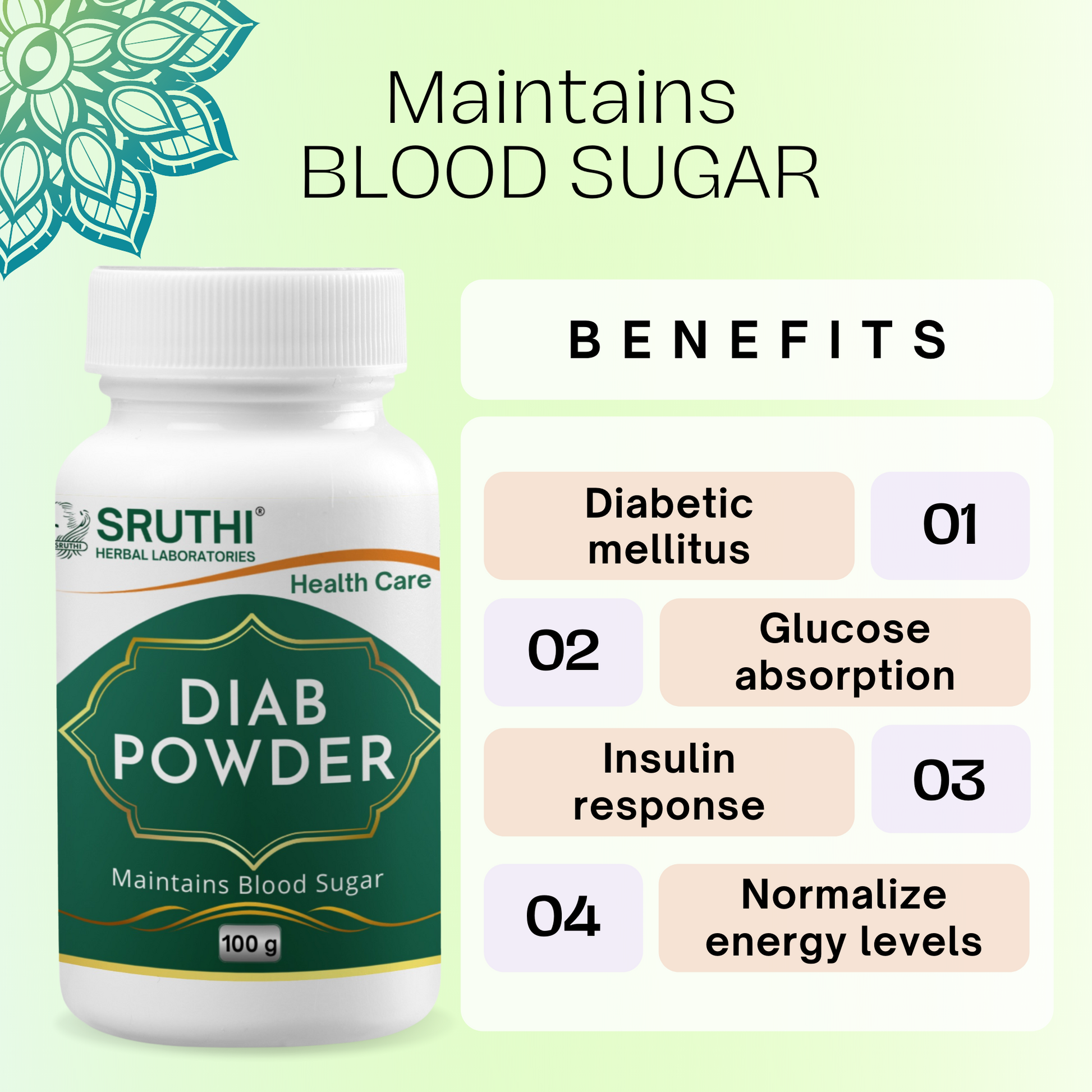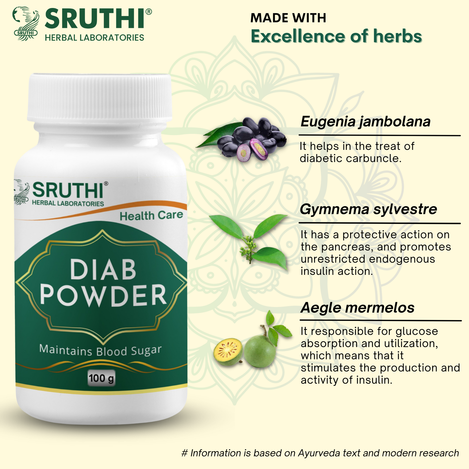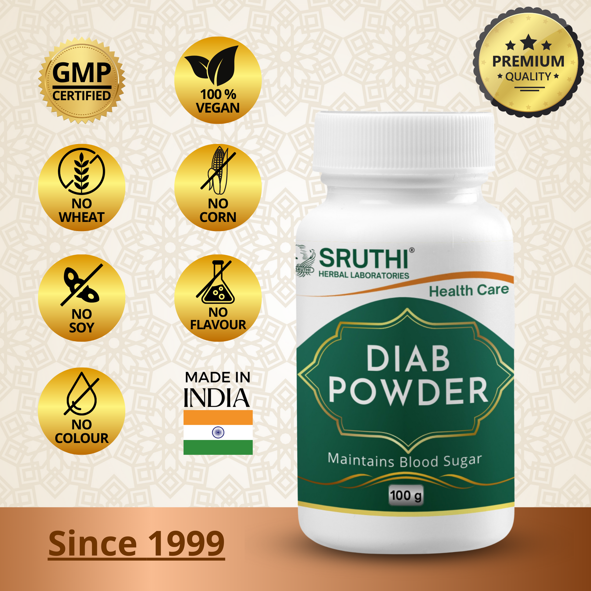 ● Sruthi Diab Powder helps in the treatment of diabetic carbuncle. It also decreases hepatic glucose production and prevents hyperglycemia.