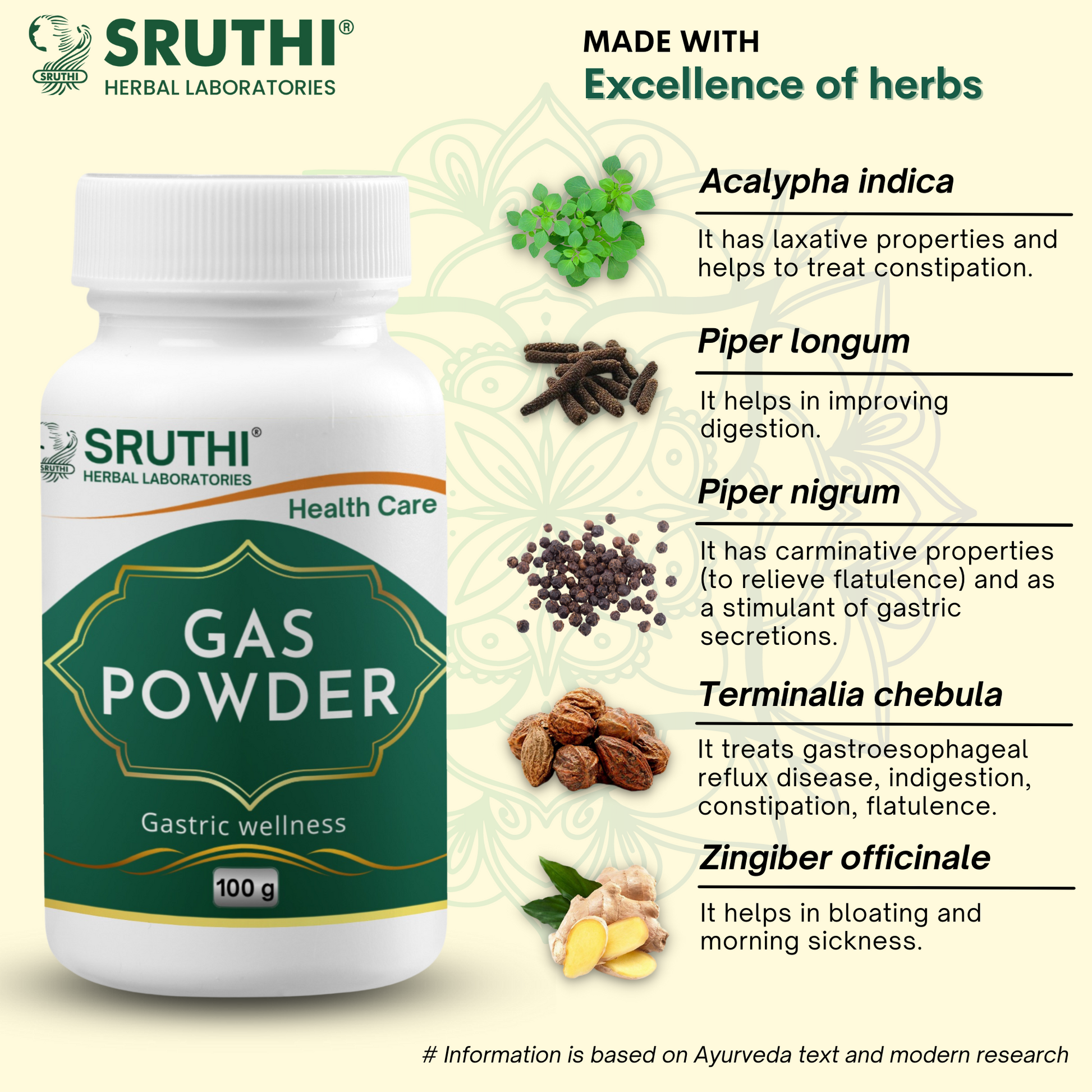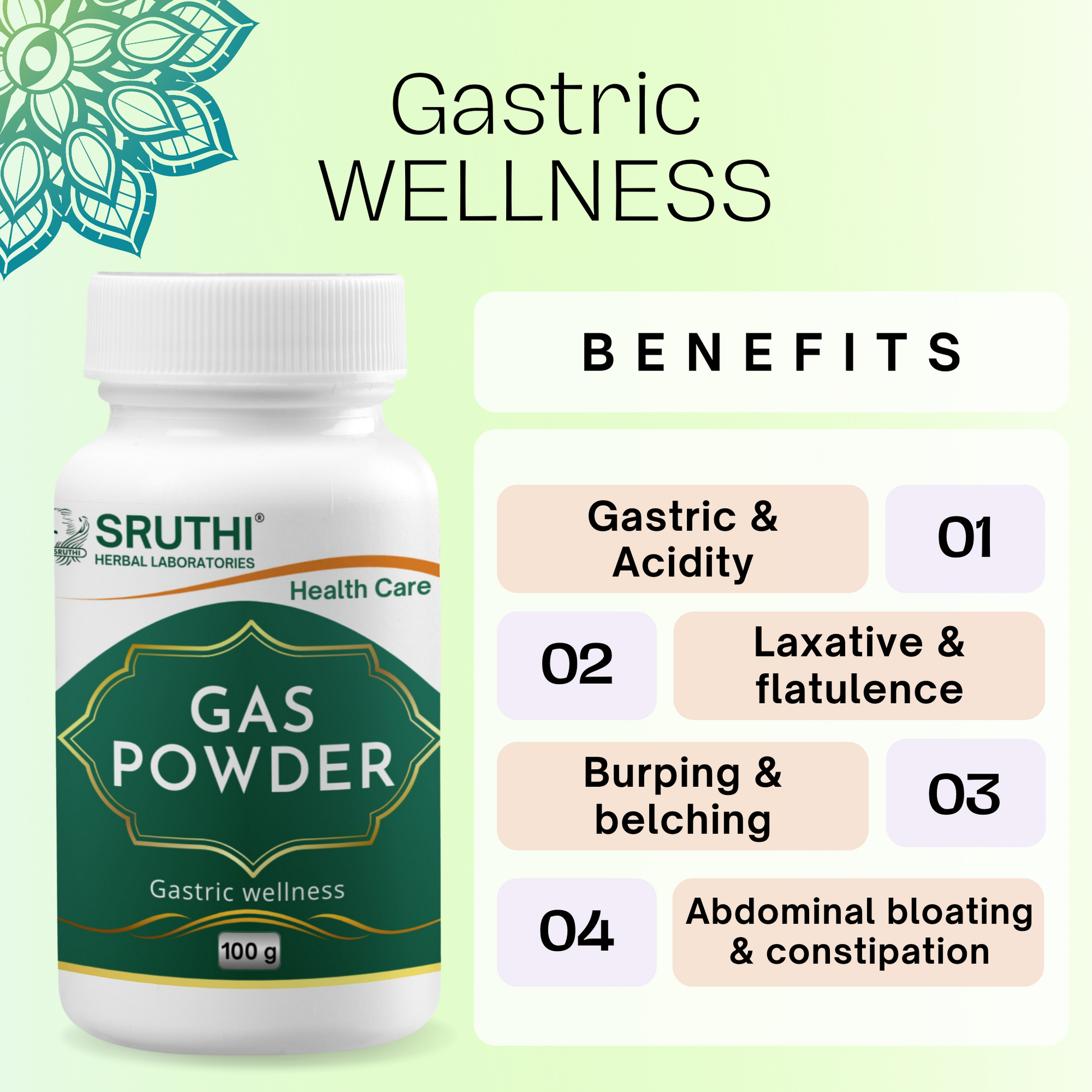 ● Sruthi Gas Powder renormalizes the intestinal transit time.