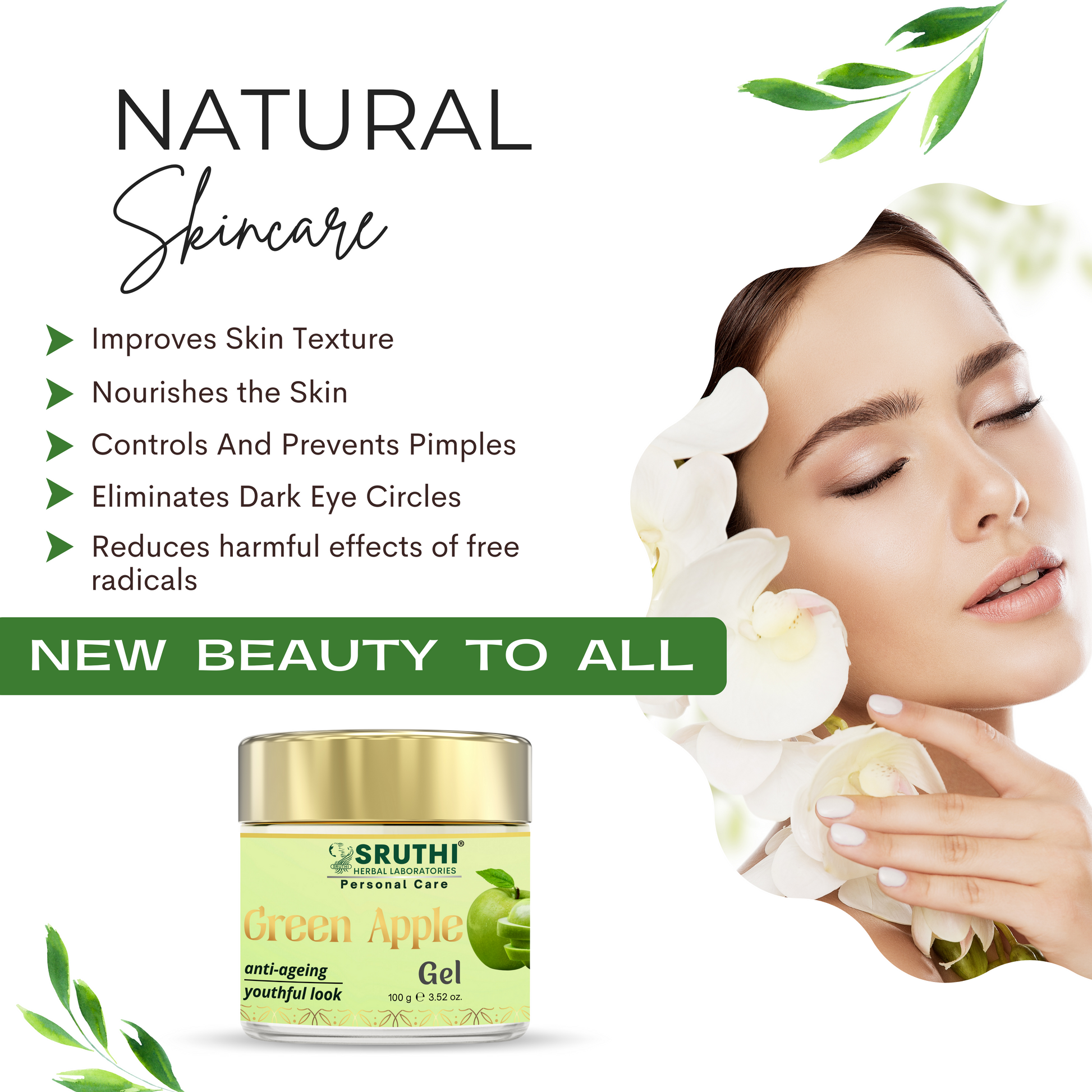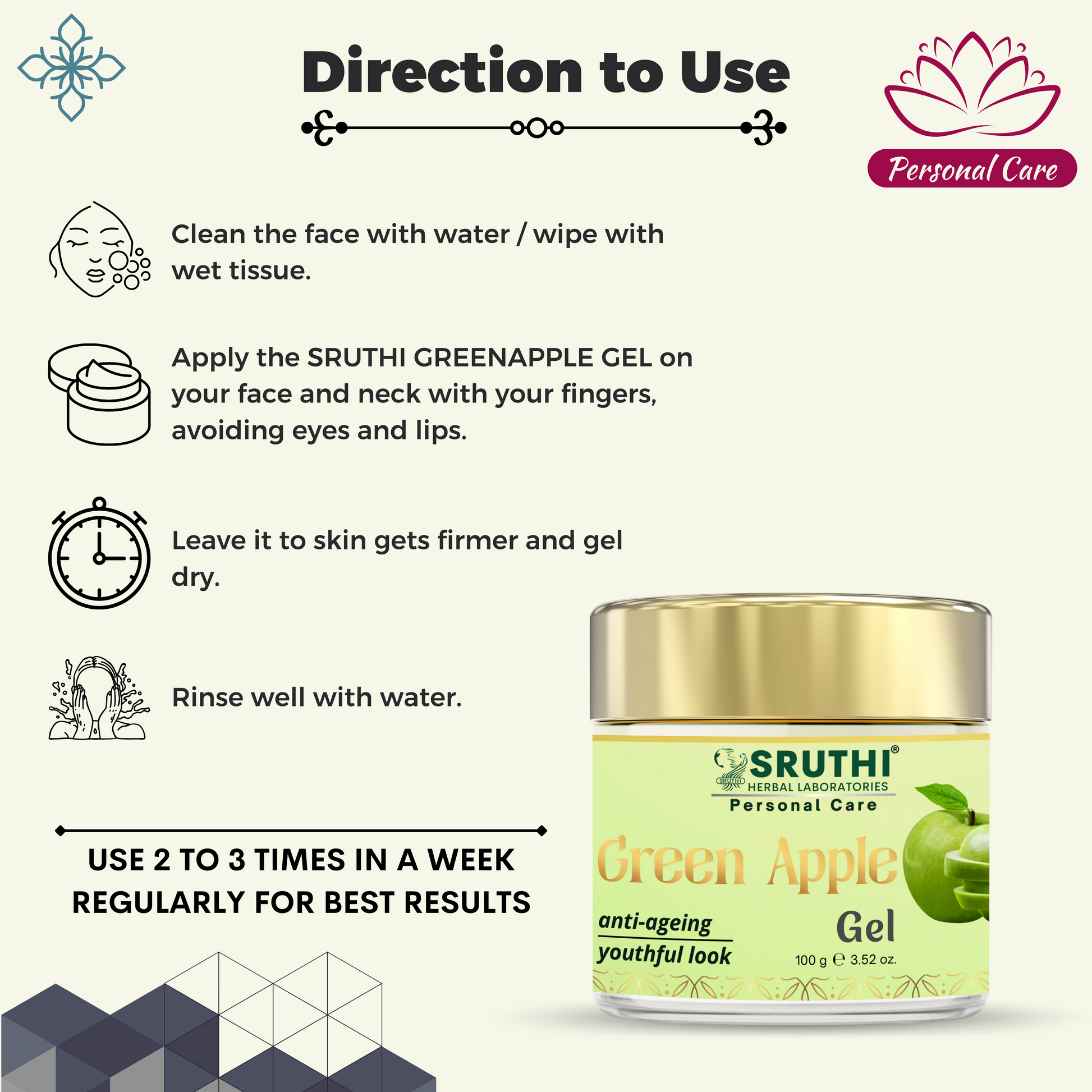 ● Sruthi Green Apple Gel are a natural anti-aging agent, helping in cell re-building and cell rejuvenation.