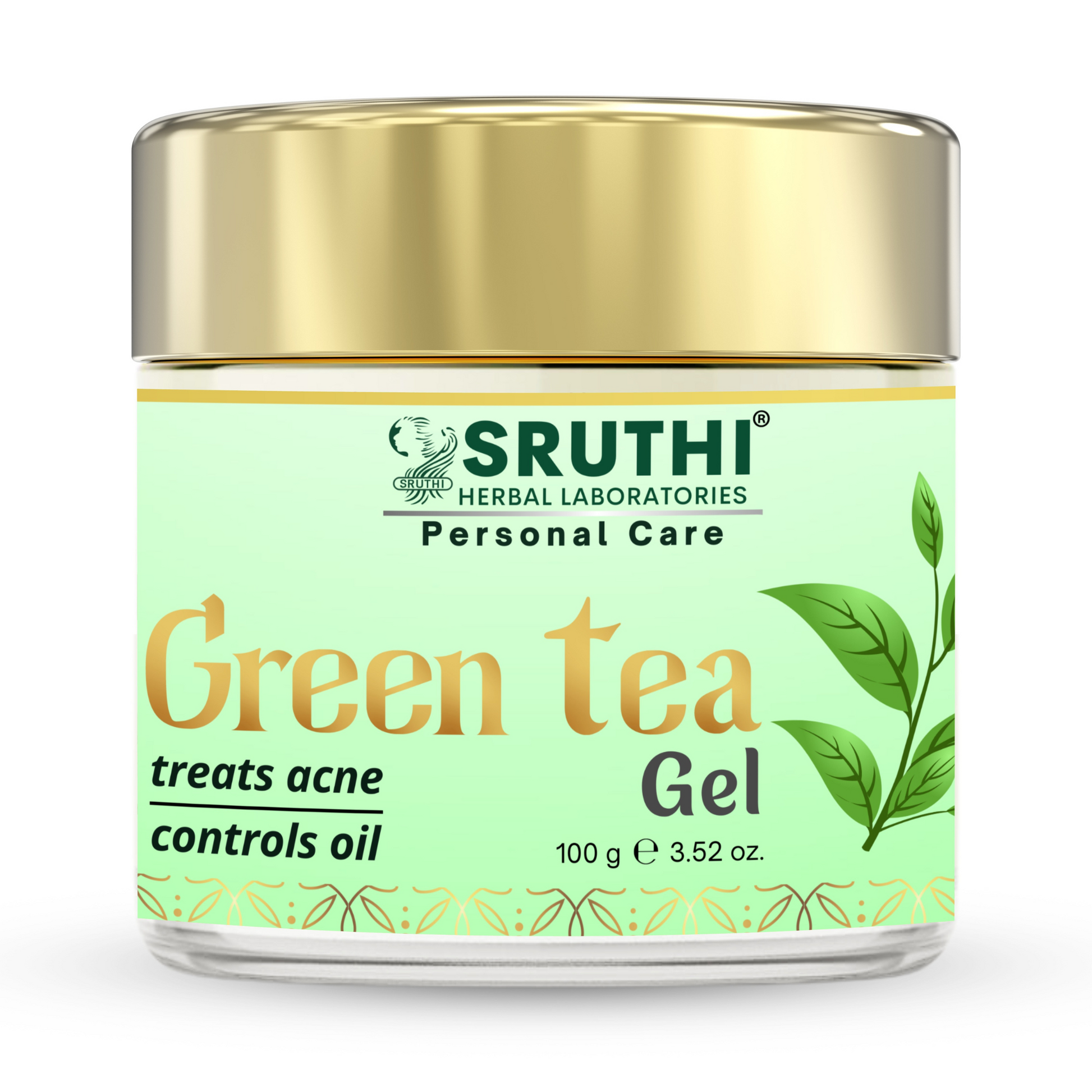 ● Sruthi Green Tea Gel rich in antioxidant, anti-inflammatory, and antimicrobial properties helps to treat acne.