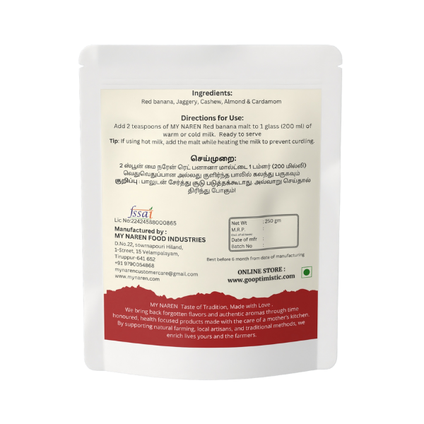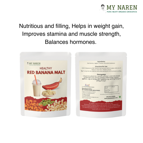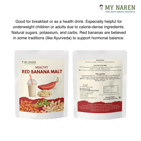 At My Naren, we believe in organic groceries with a pure heart. Our red banana malt extract powder is crafted with dedication to quality, ensuring that every spoonful reflects our commitment to natural, sustainable, and authentic ingredients. Whether you’re baking for family, friends, or yourself, My Naren brings a touch of love to every bite.