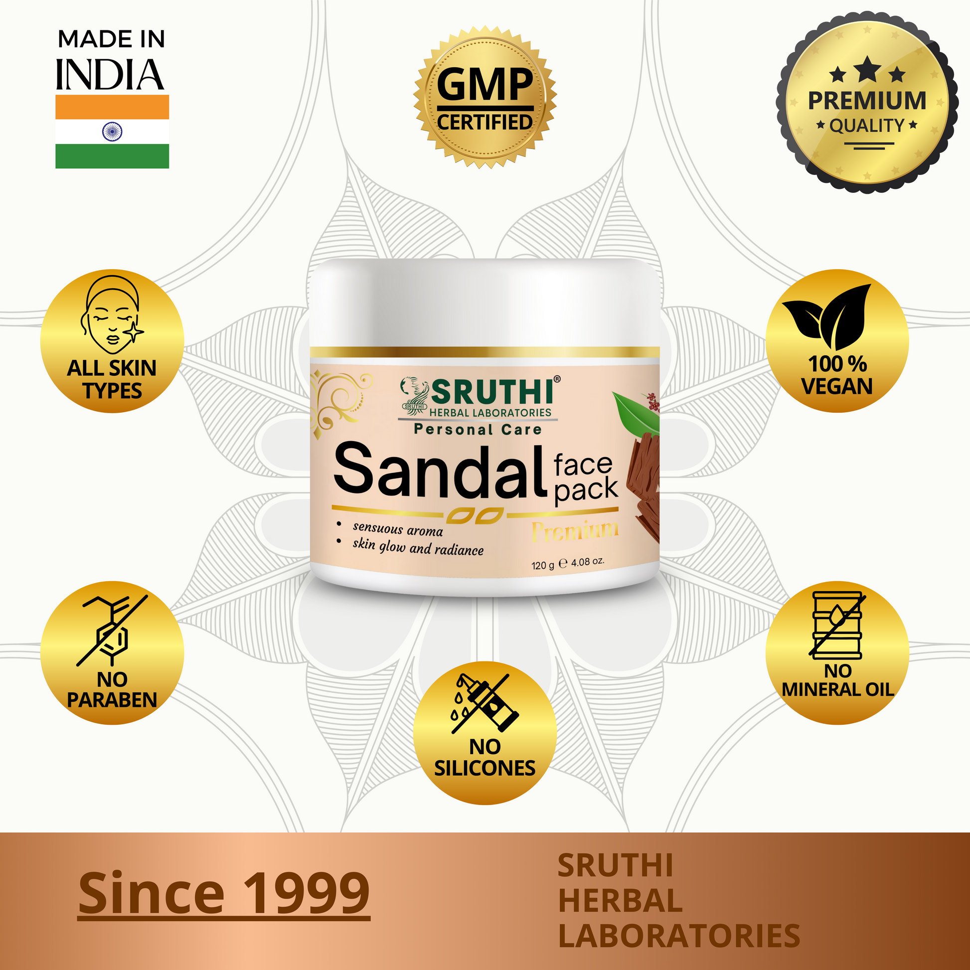 ● Sruthi Sandal Face Pack has an senuous aroma to soften, hydrate and scent your skin.